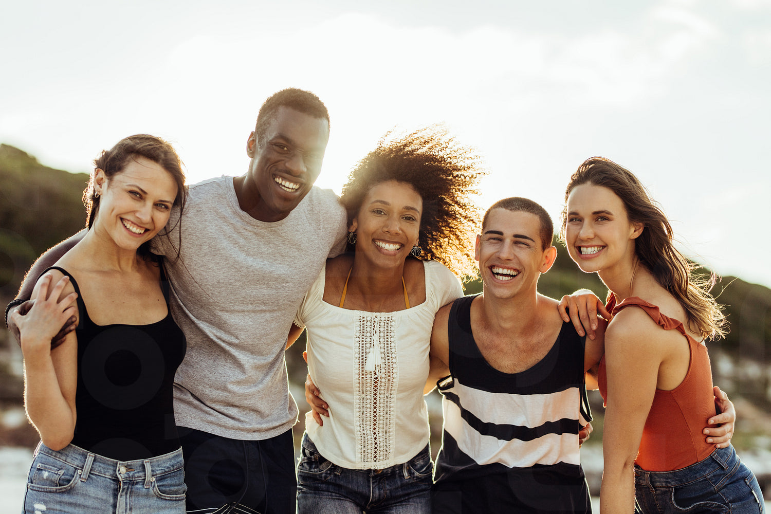 Group of friends who met during travel on their you abroad. Students being happy and while travelling their sabbatical year.