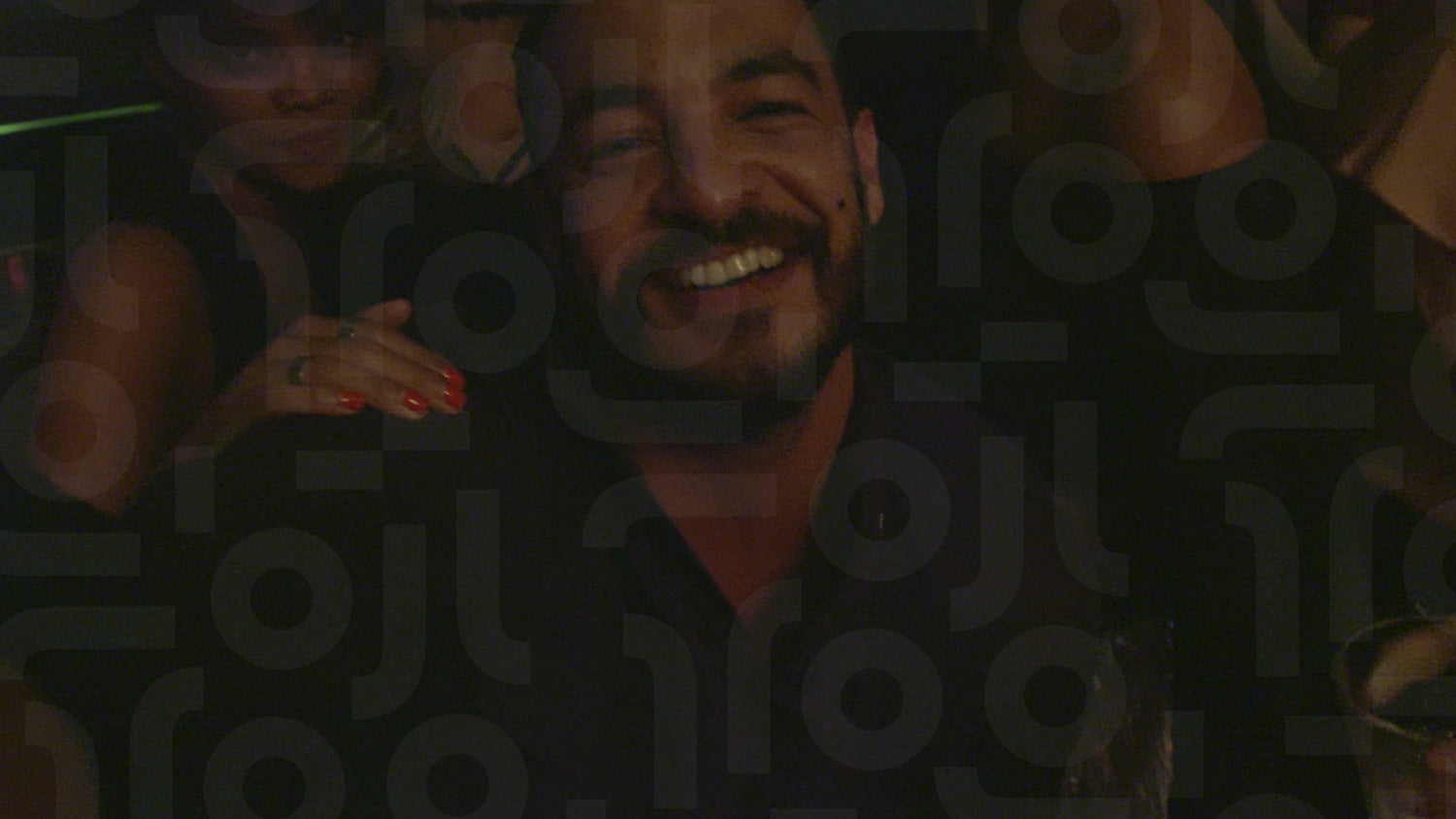 Happy young guy taking selfie with friends enjoying at nightclub party. Young men and women having fun at the pub.