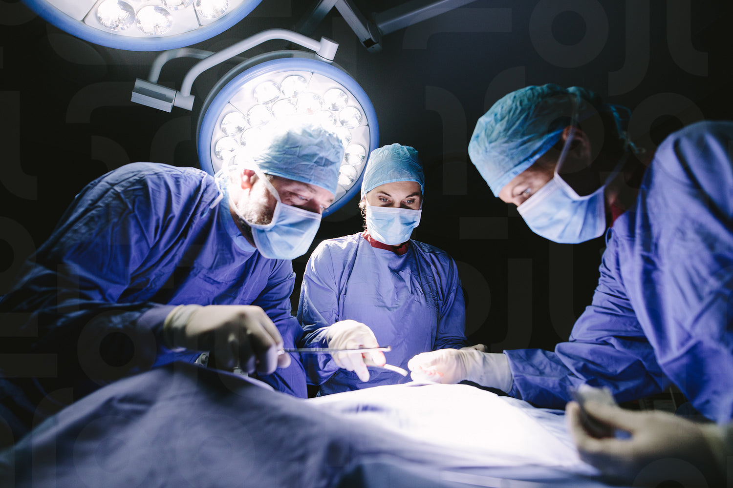 Medical team performing surgery in hospital. Group of surgeon at work in operation theater.