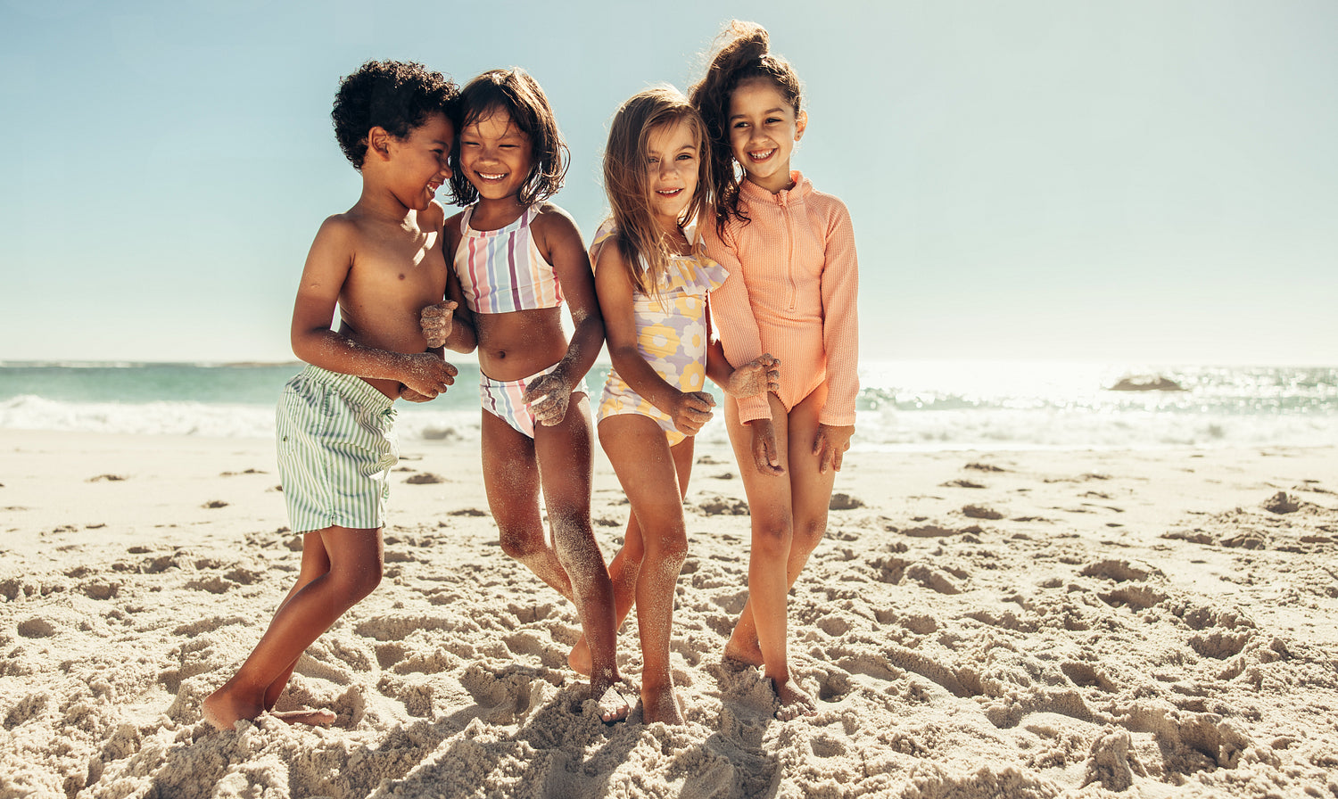 Happy kids playing together at the beach