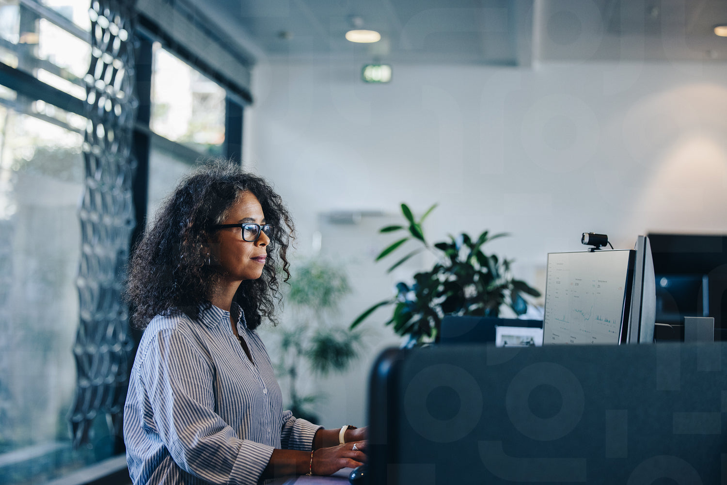 Mature businesswoman working at her desk. Female professional looking busy working in computer in office.