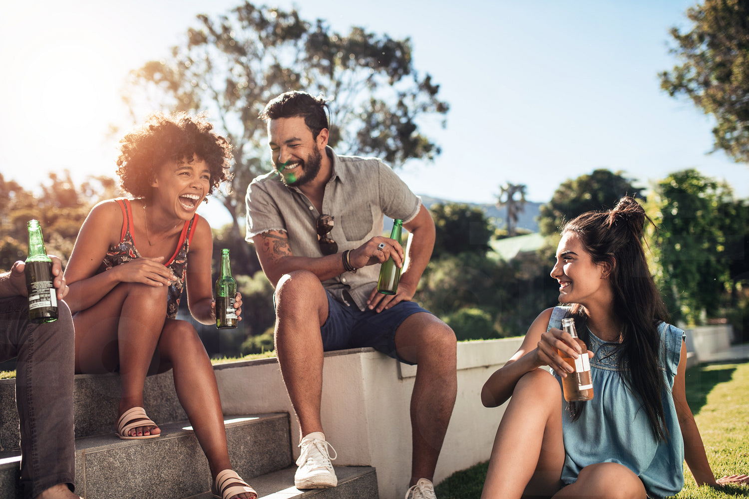 Friends enjoying and having drinks at outdoor party