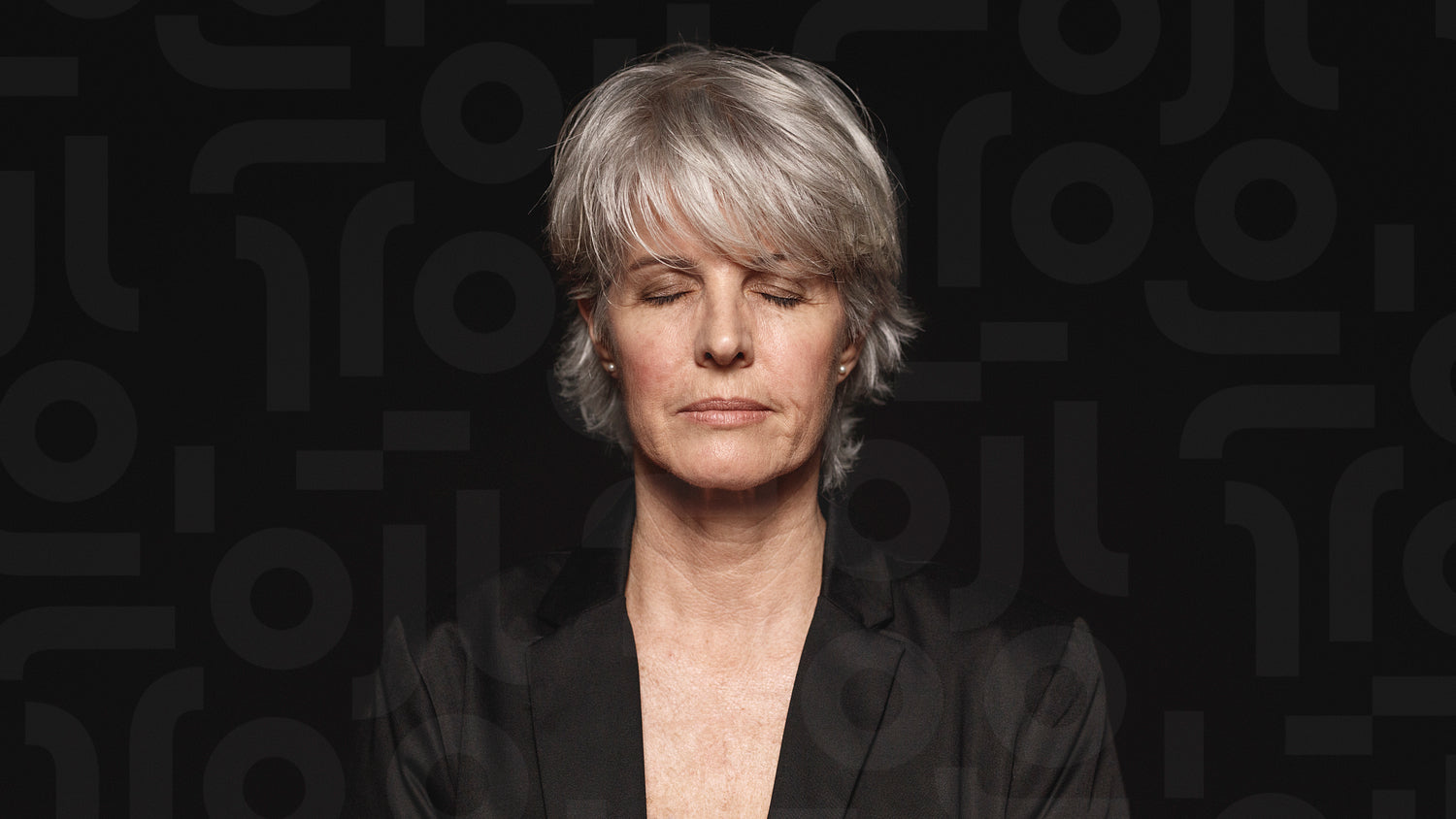 Close up of senior woman with her eyes closed. Woman in formal wear isolated on black background.