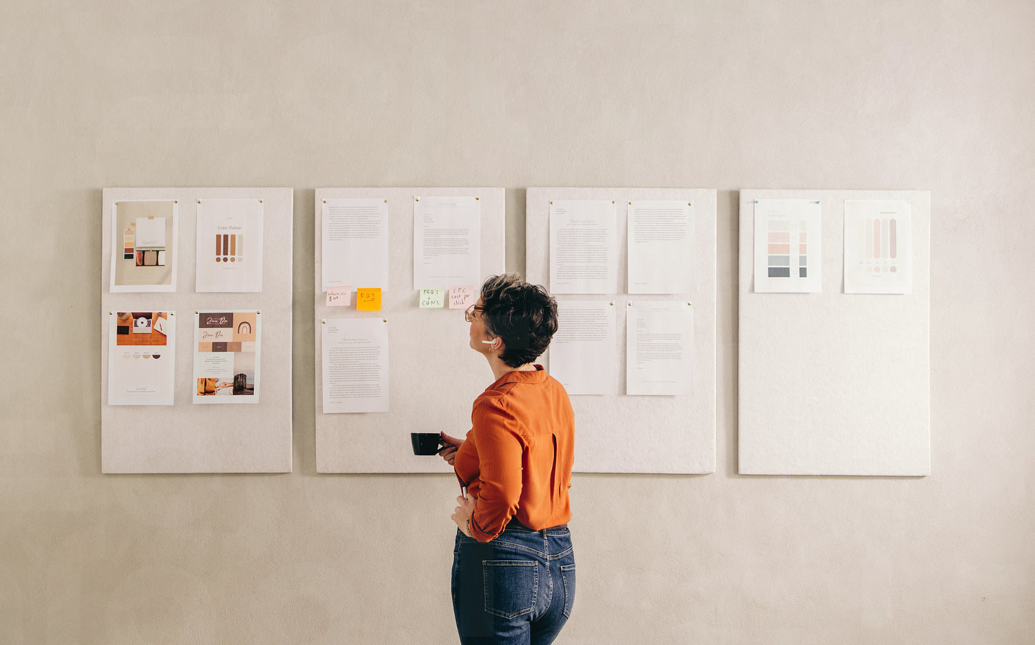 Mature businesswoman sharing her ideas during a virtual meeting with her team. Female designer giving a presentation in a virtual meeting. Creative businesswoman working remotely in an office.