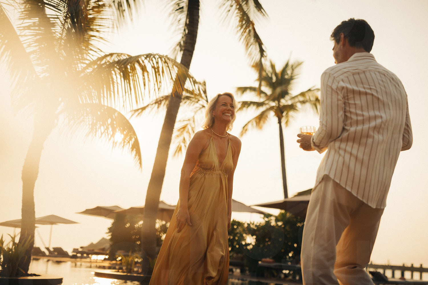 Couple enjoying vacation at holiday resort at sunset