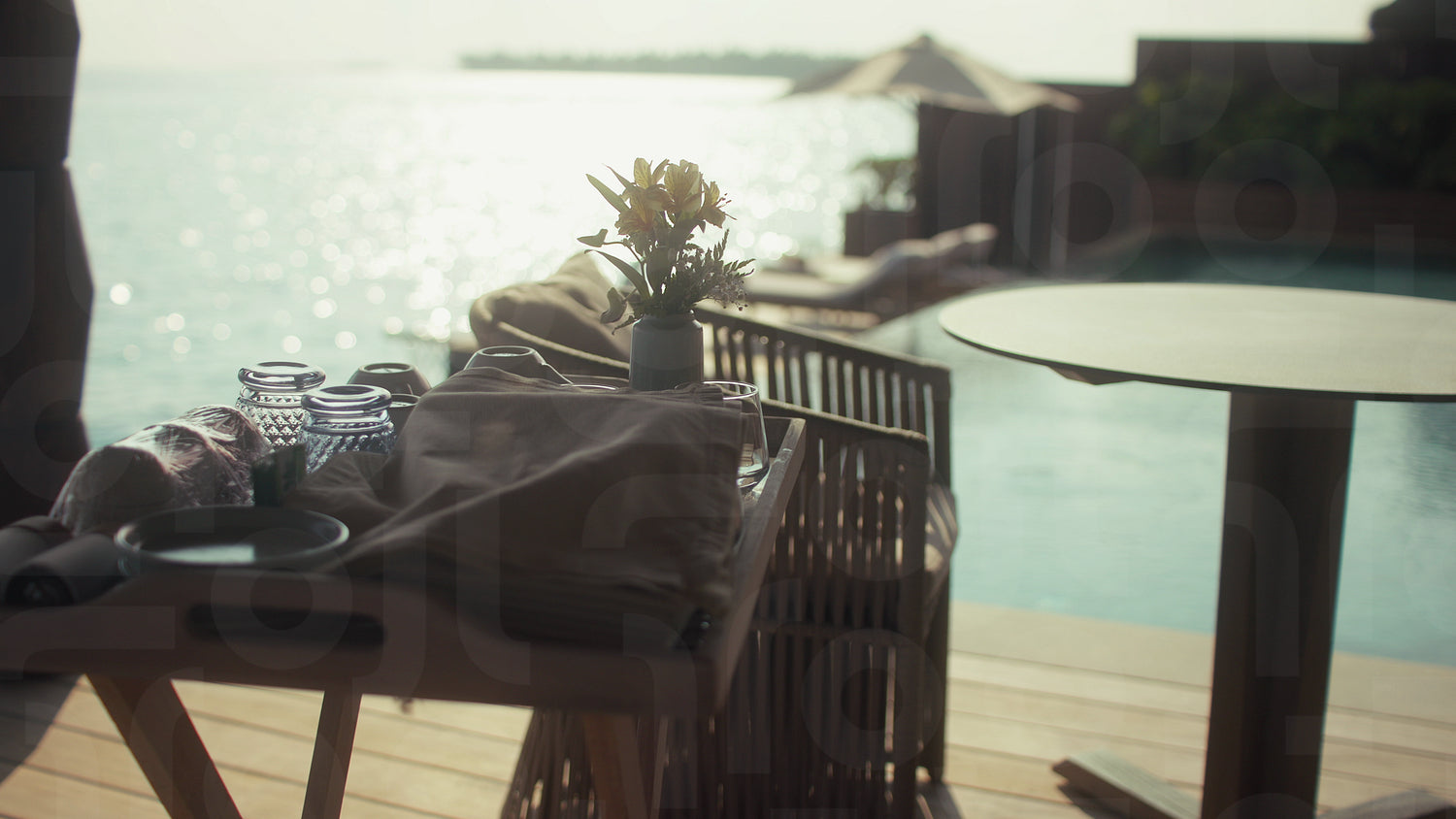 Delicious in-villa breakfast setup overlooking the ocean at a luxury island resort