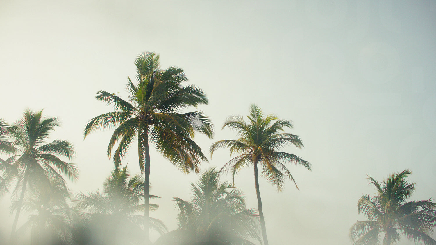 Golden morning light over tropical palms with artistic lens distortion