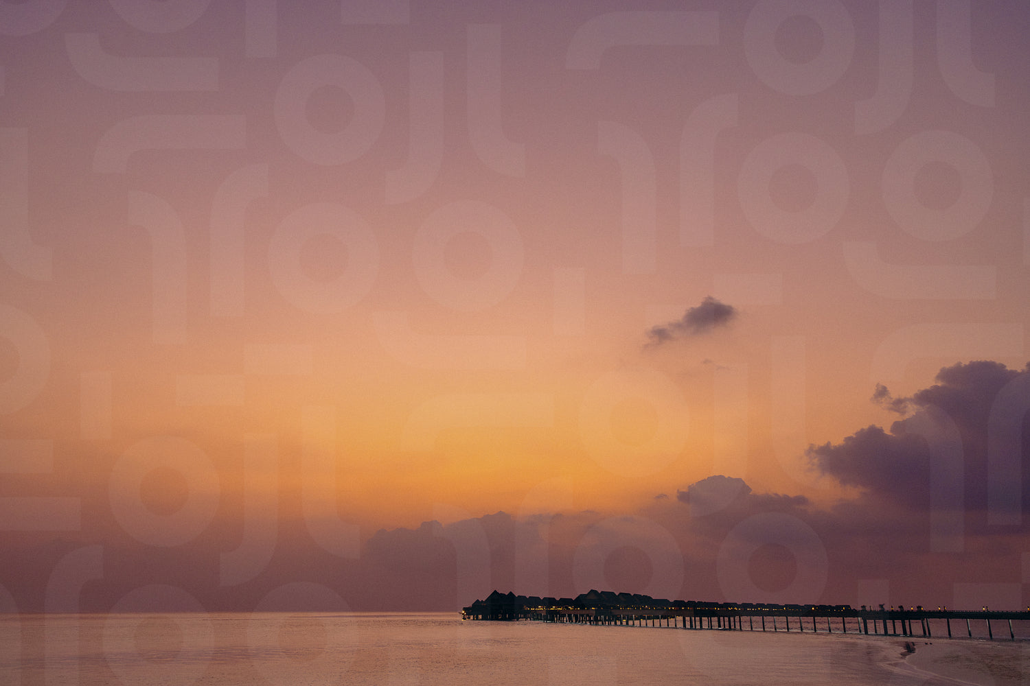 Serene evening sunset over an island with a calm sea and a beautiful pier