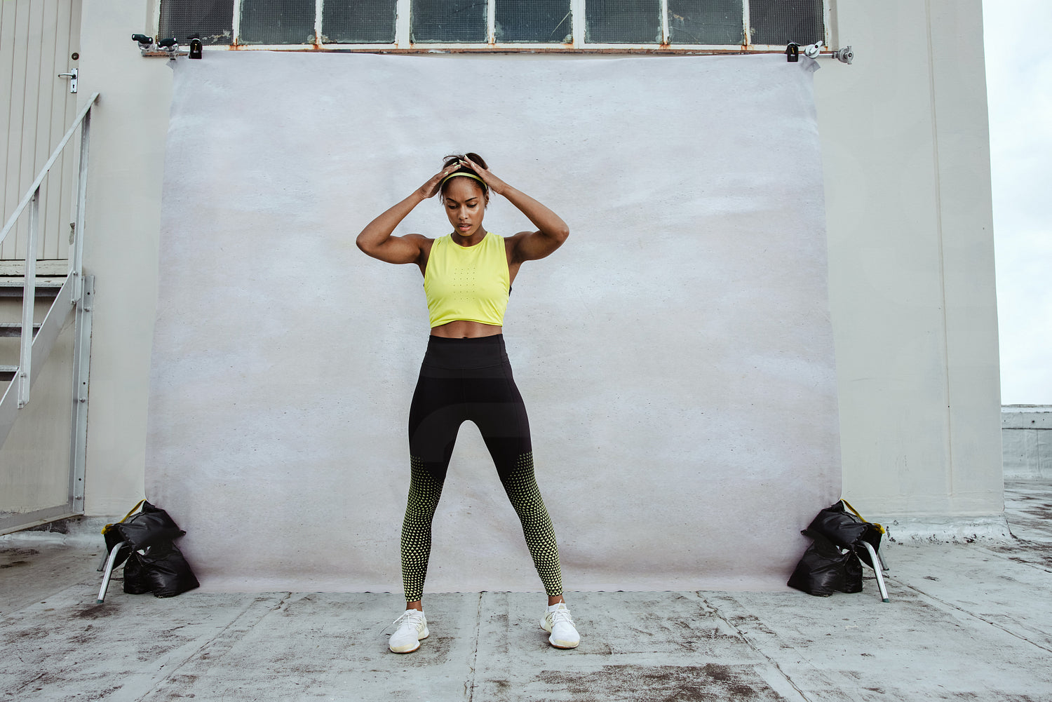 African female athlete exercising on rooftop