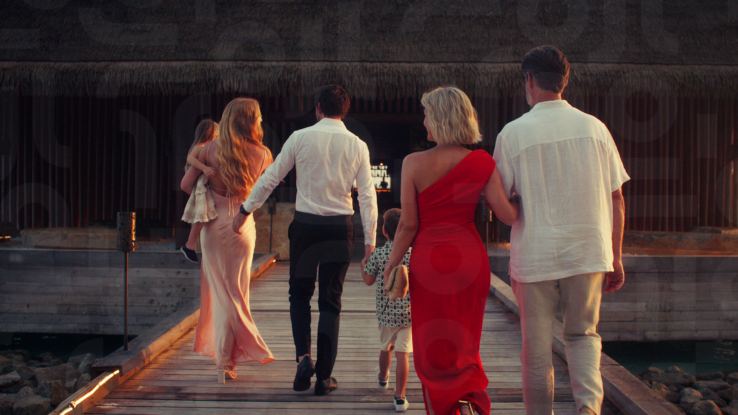 An intimate gathering of friends and family enjoying a celebratory dinner. They raise their glasses in a joyous toast, sharing happy moments and making lasting memories together.