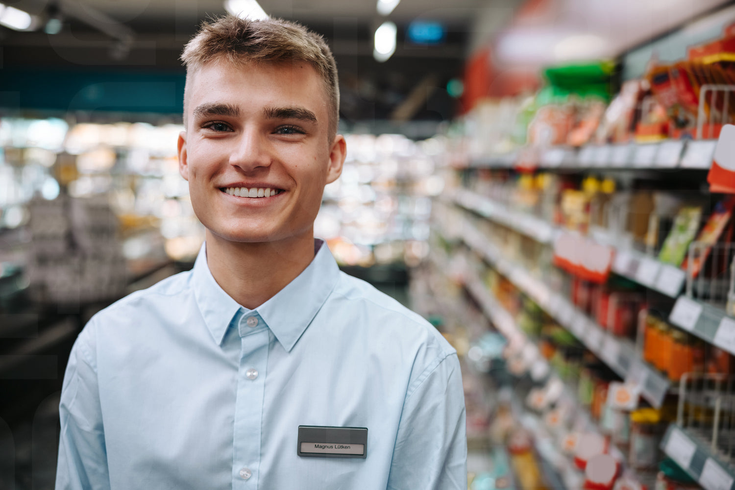 Happy young supermarket worker