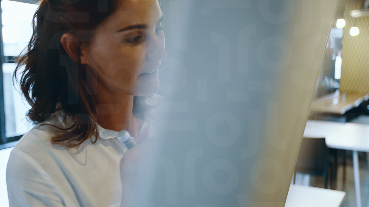 Business associates having a brainstorming session together in front of a white board. Businesswoman explaining the plan to team on a whiteboard in office.