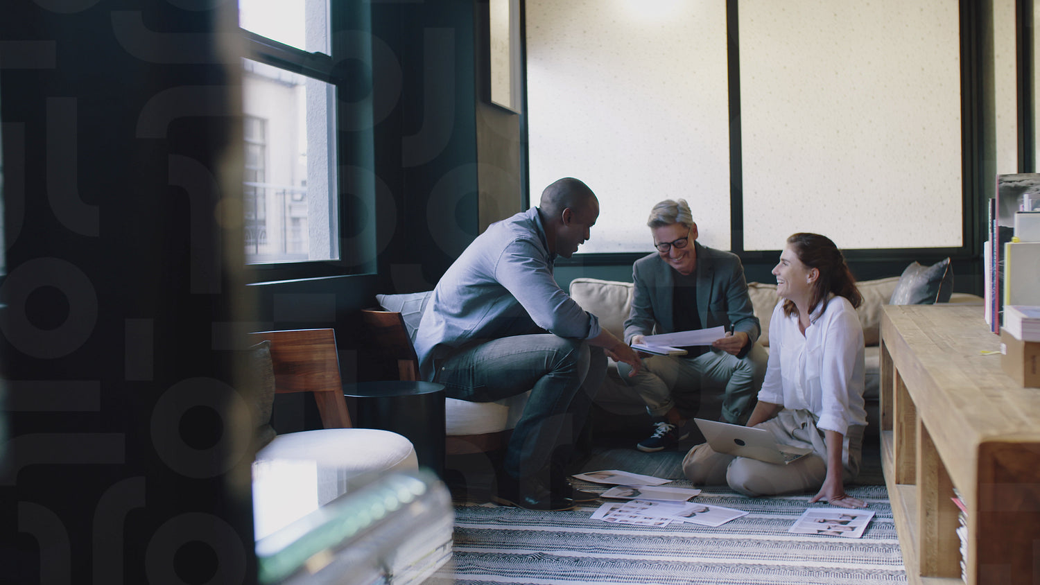 Multi-ethnic businesspeople having a discussion over a project in startup office. Business professionals talking over some marketing plans in meeting.