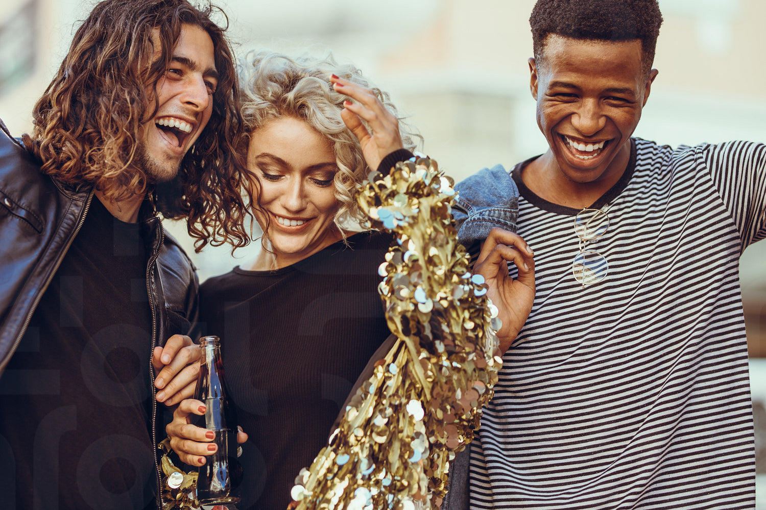 Diverse group of young people enjoying together outdoors. Group of men and woman outdoors and having fun.