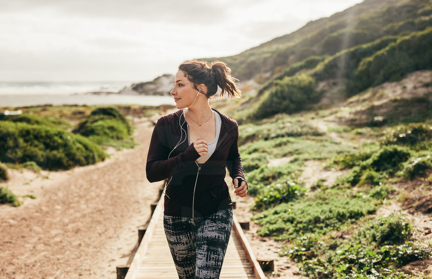 Female running outdoors in the morning. Fitness woman doing running exercising outdoors.