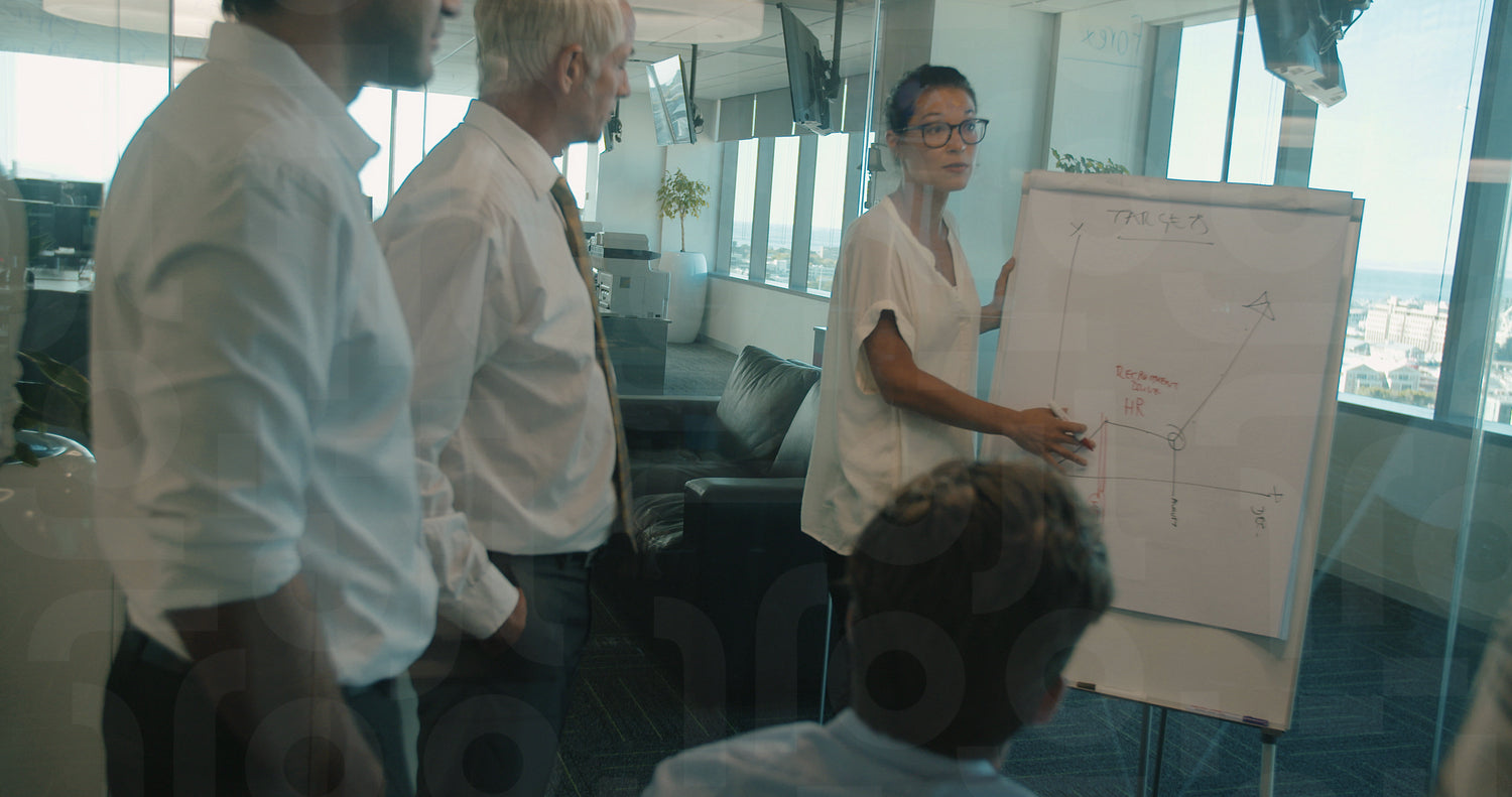 Businesswoman giving a presentation to colleagues. Female manager explaining new business tragets to coworkers in office.