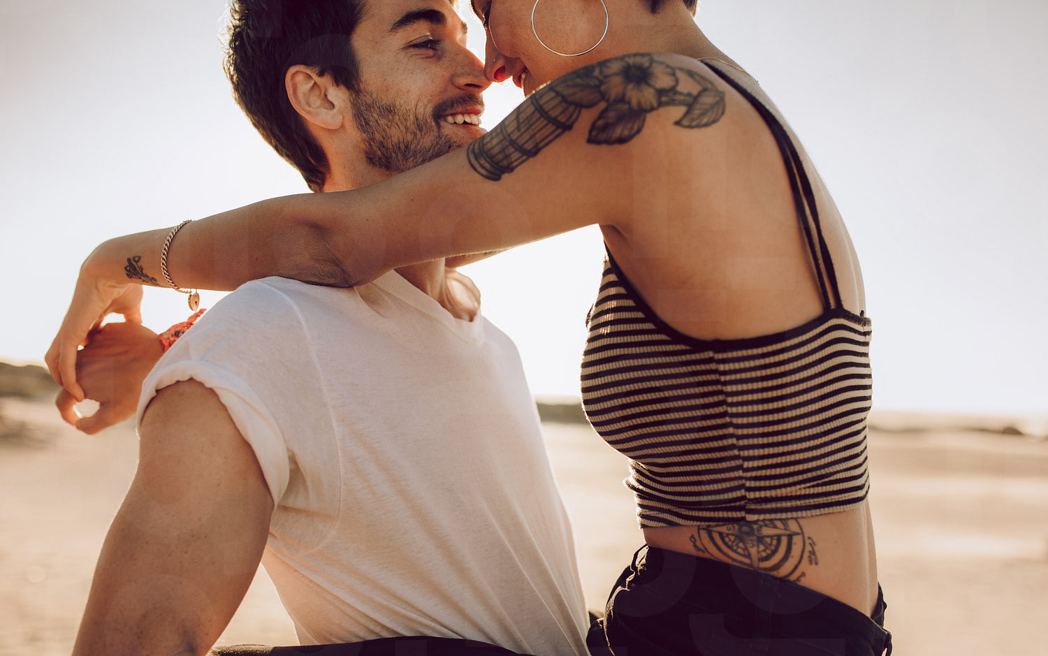 Young couple in love outdoor. Dating couple having a great time together outdoors.
