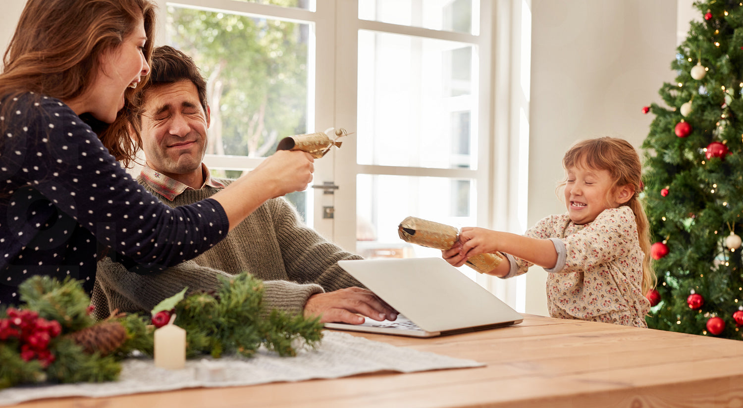 Playful family at home during christmas