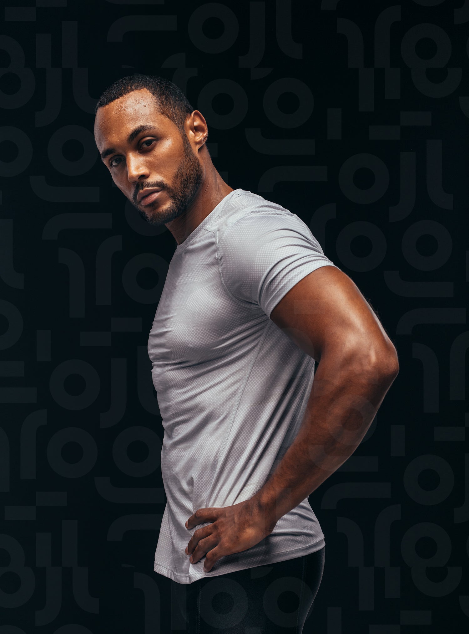 Monochrome fitness portrait of muscular athlete