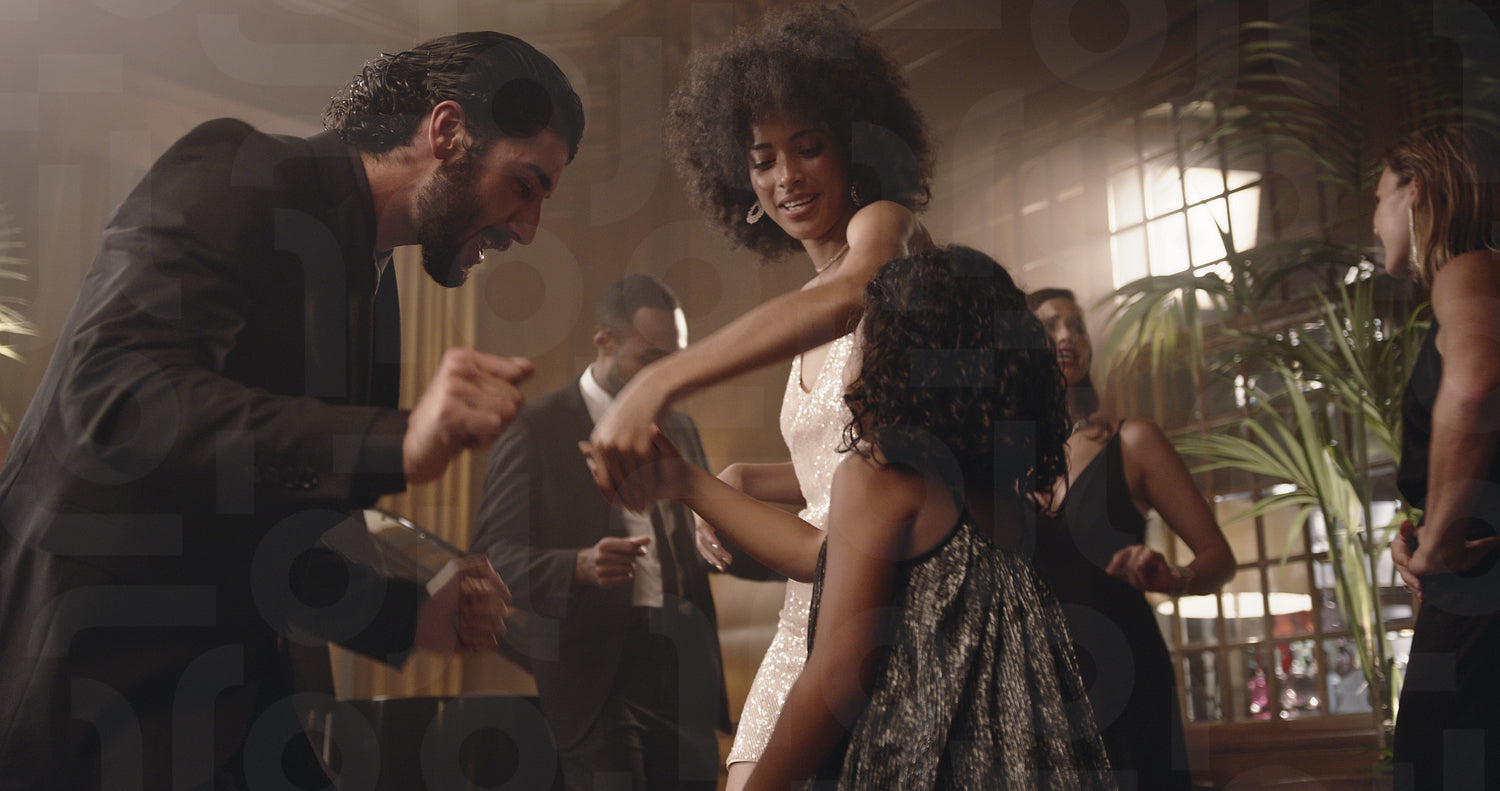 People dancing with a girl and having fun at a party. Woman dancing with her cute girl at gala night