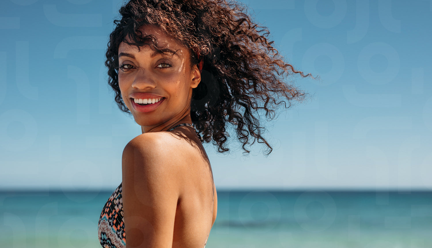 Side view of a woman with curly hair at the beach