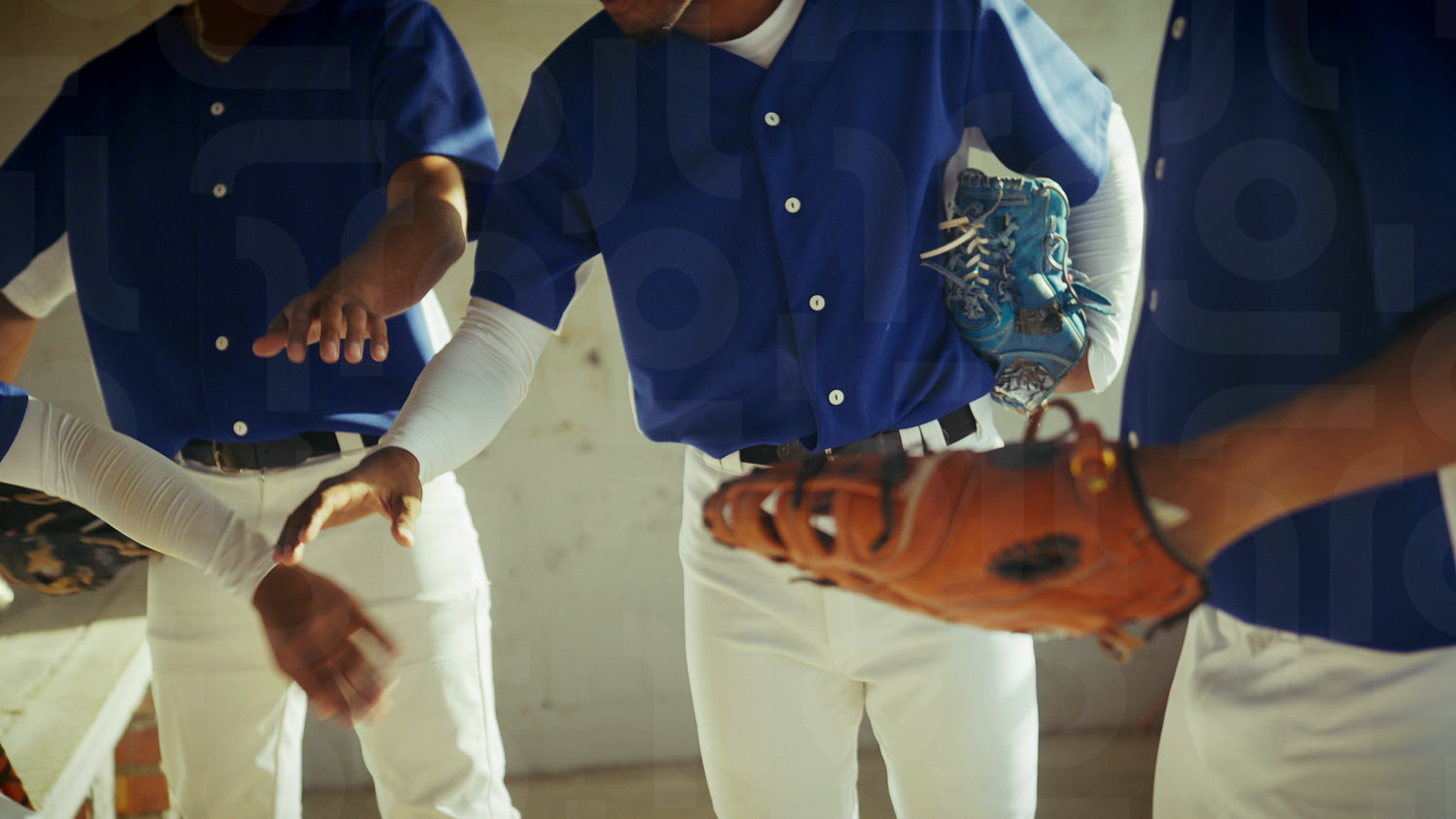 Focused baseball team huddles in the dugout. Players emphasize unity and strategy, preparing mentally for an intense game.