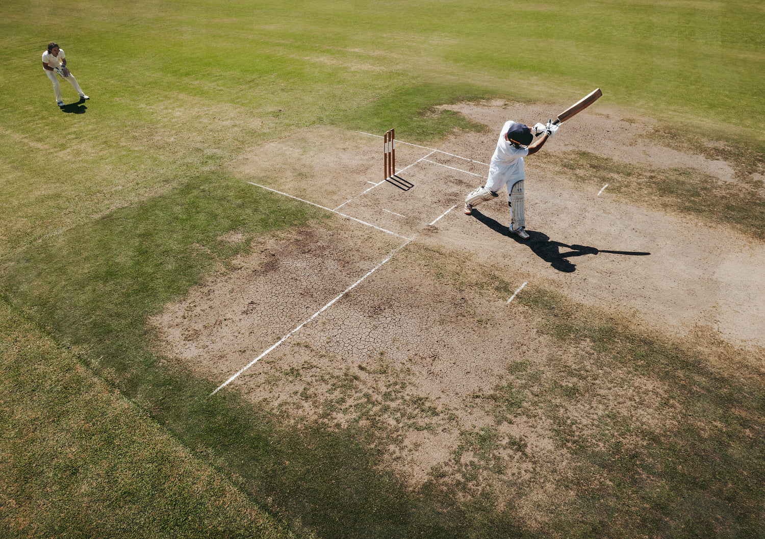 Batsman swinging the bat during a cricket match on the field