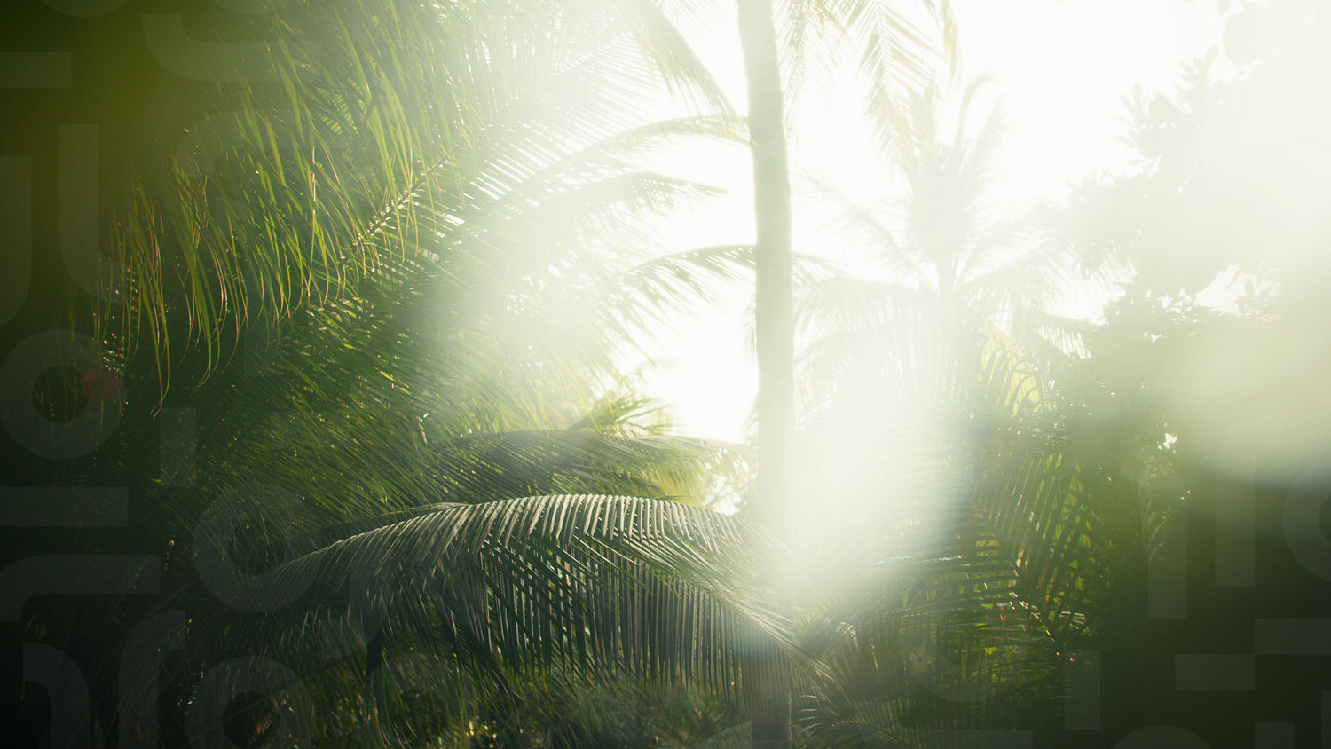 Ethereal morning light shines through vibrant green palm leaves at a tropical resort
