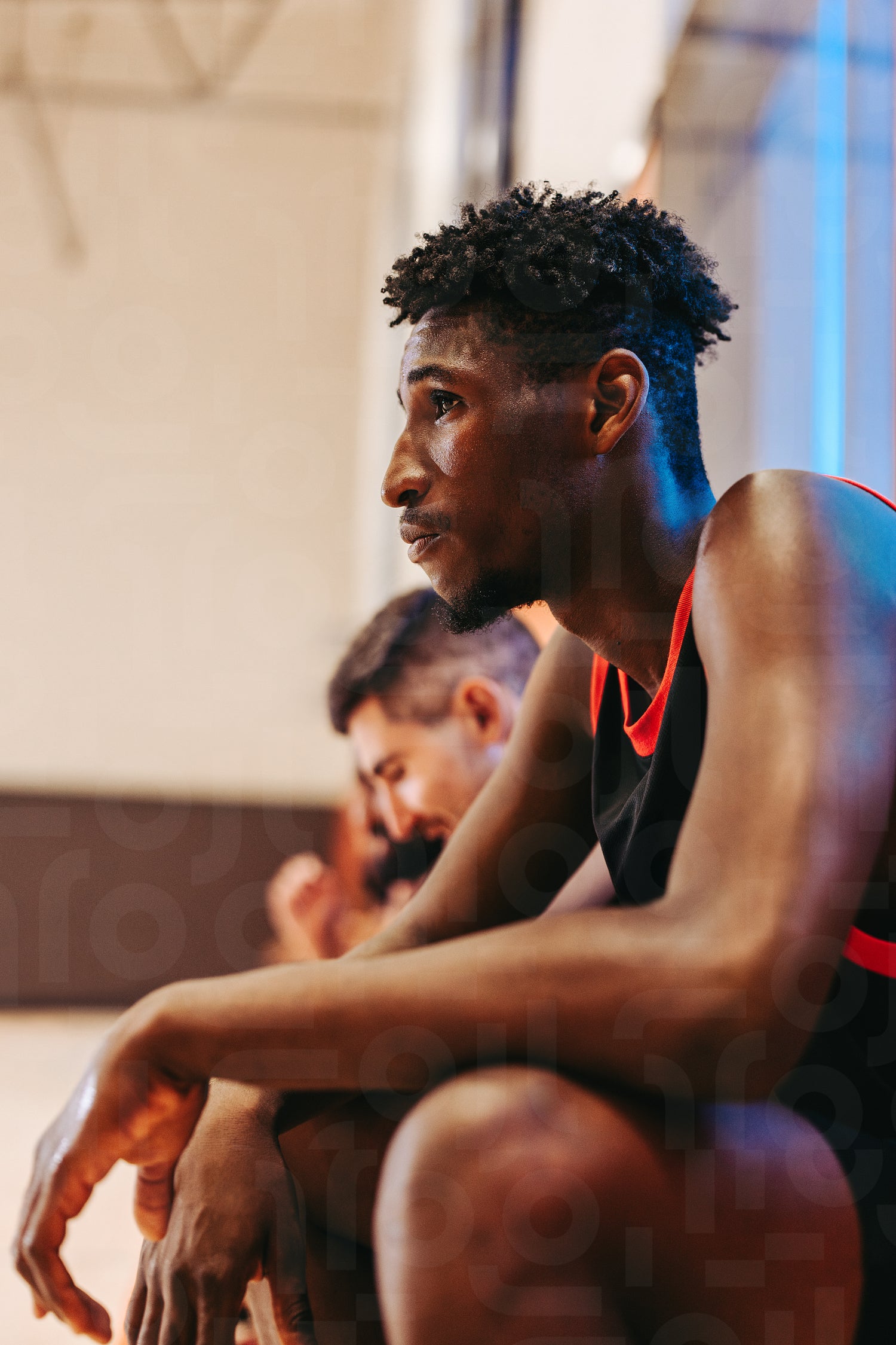 In his zone: Focused basketball player resting on the sideline