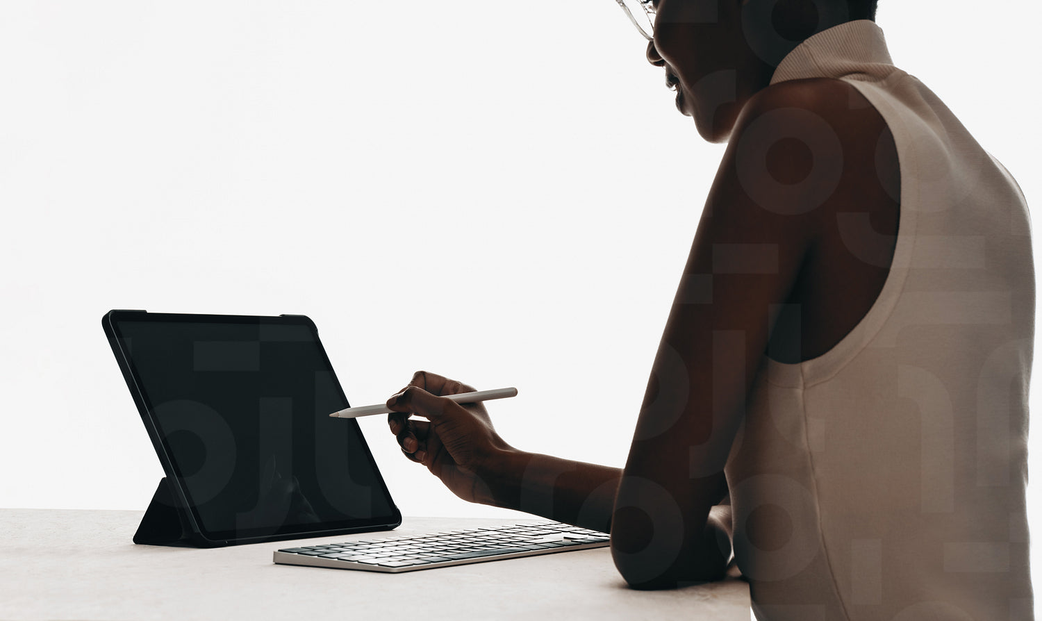 A focused professional utilizes a stylus on a tablet for working, learning, or designing. Ideal for representing modern work, technology, creativity, or digital productivity concepts.
