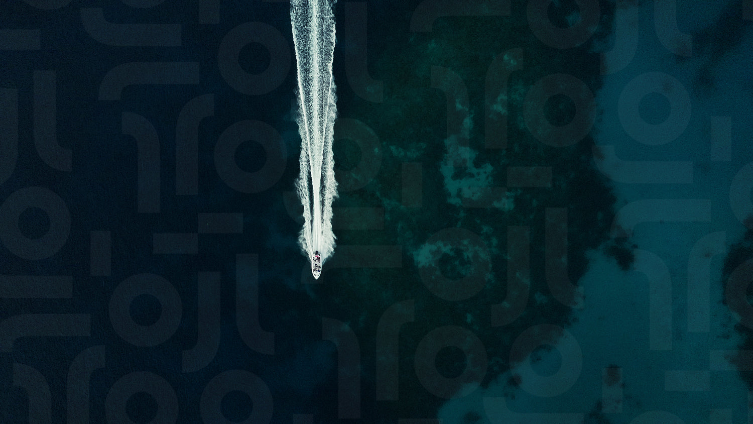 Aerial view of a boat speeding across clear turquoise ocean water, leaving a prominent white wake. Ideal for showcasing tropical travel, water sports, and marine adventures.