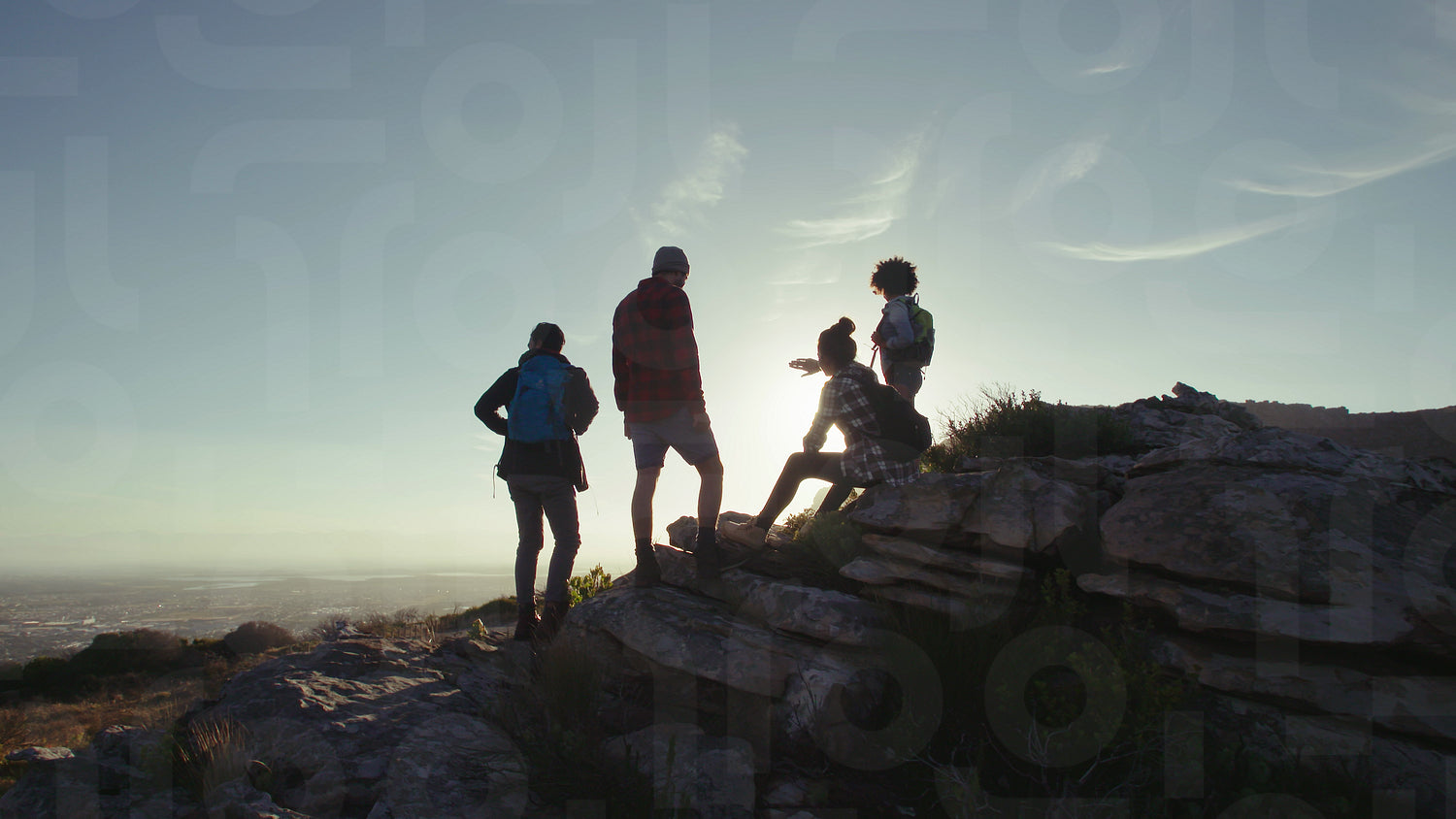 Friends resting on mountain top during hike