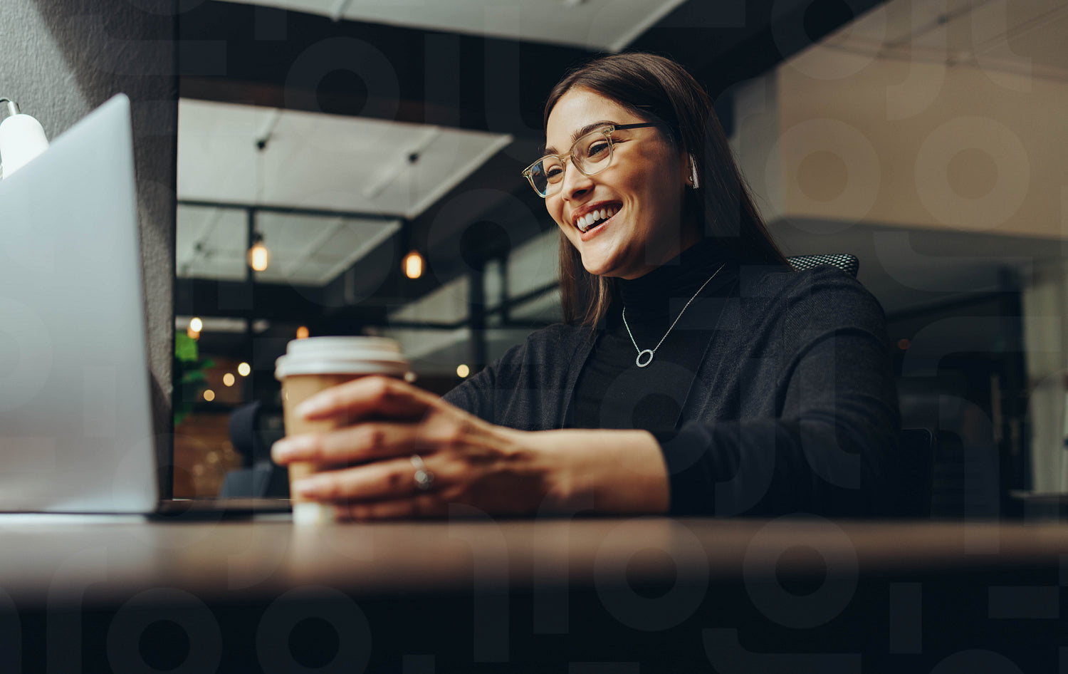 Businesswoman smiling cheerfully during an online meeting in a modern co-working office. Happy female entrepreneur communicating with her business associates while working remotely.
