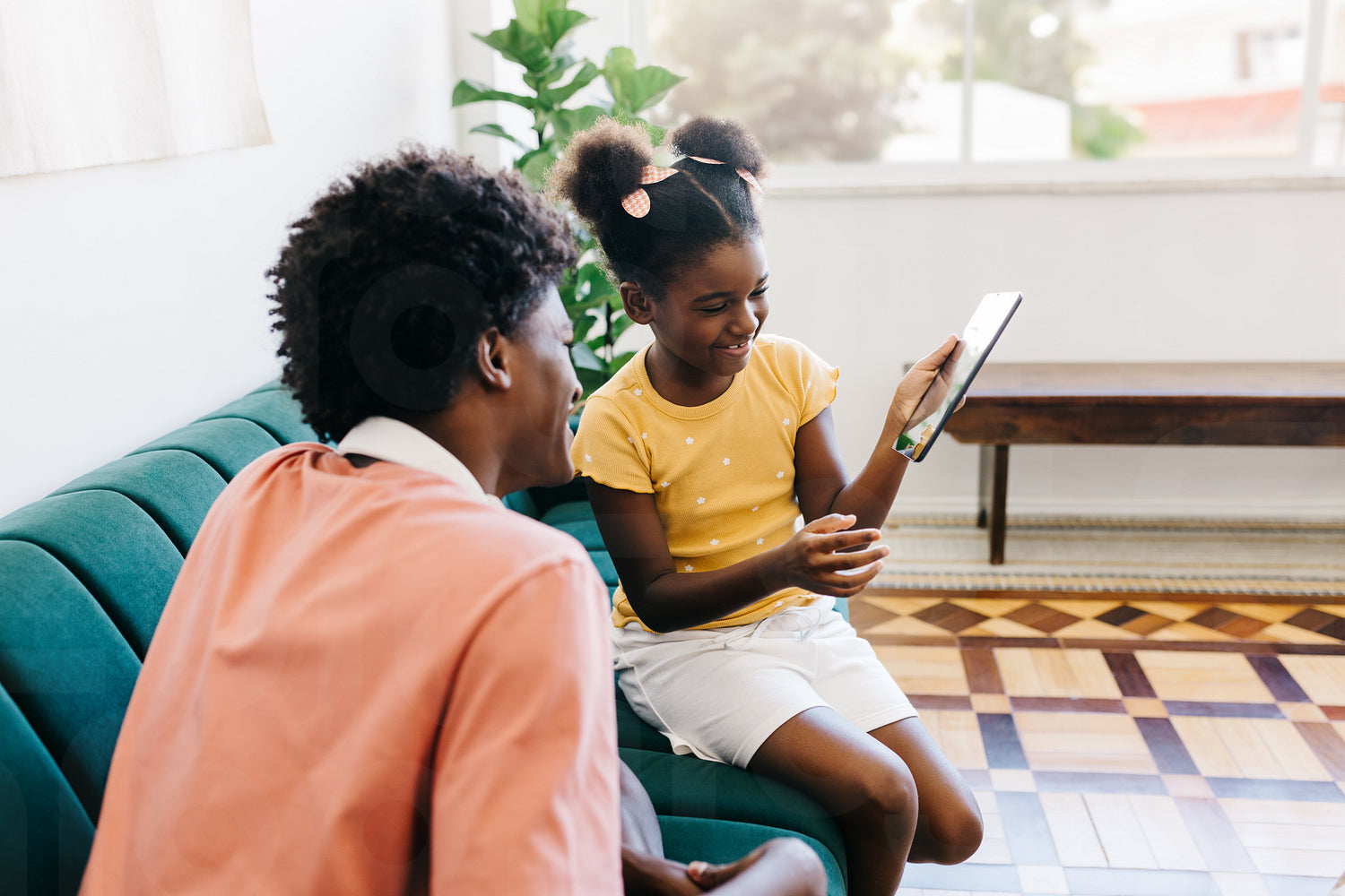 Brother and sister spending quality time together, enjoying entertainment with a tablet