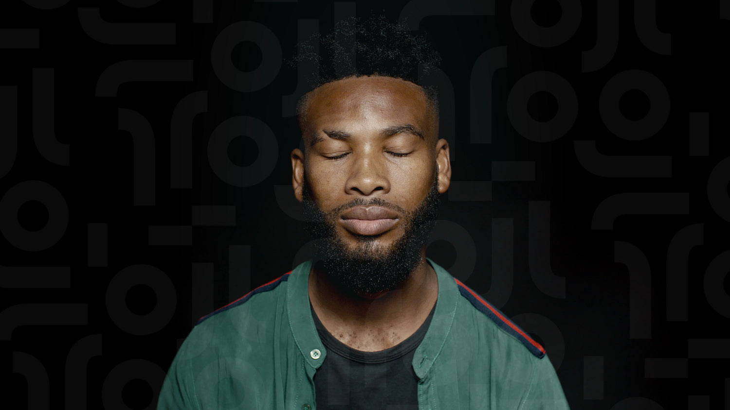 Young african man with eyes closed. Stylish African man with beard on black background.