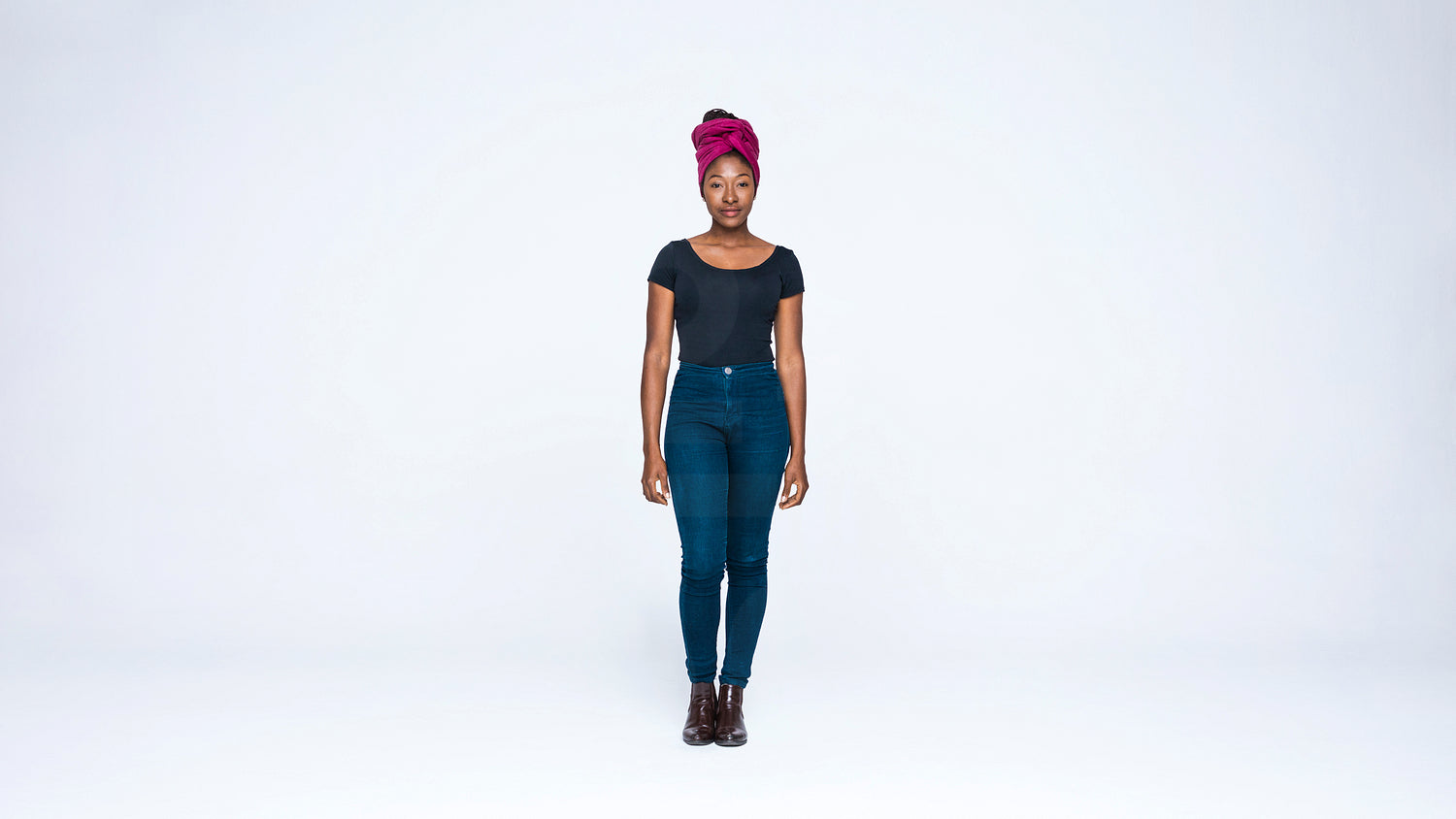 African woman standing isolated on white background. African female with a cloth wrapped on head looking at camera.