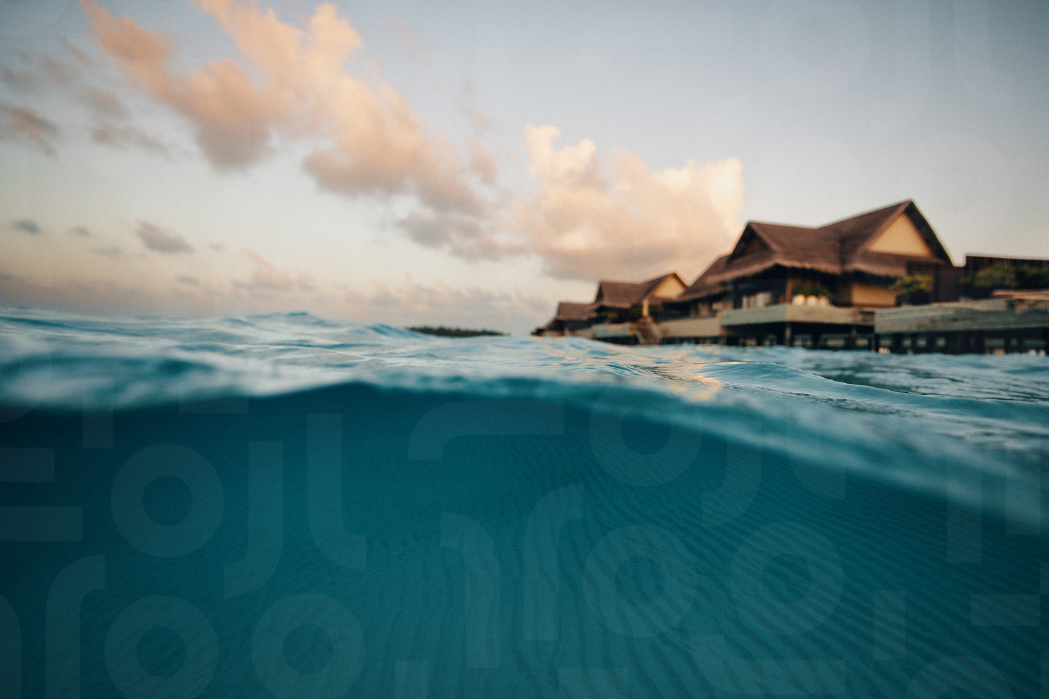Seaside view of an ocean villa in the sunset