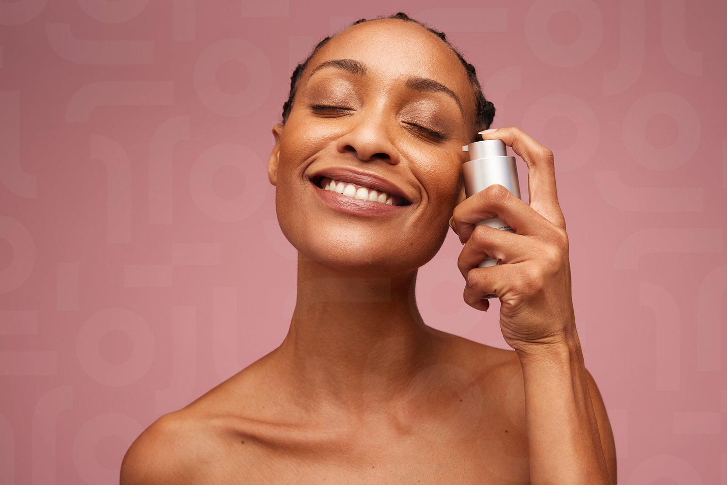 Closeup portrait of a woman with healthy skin using serum on her face. Beautiful woman applying essential oil to her face.