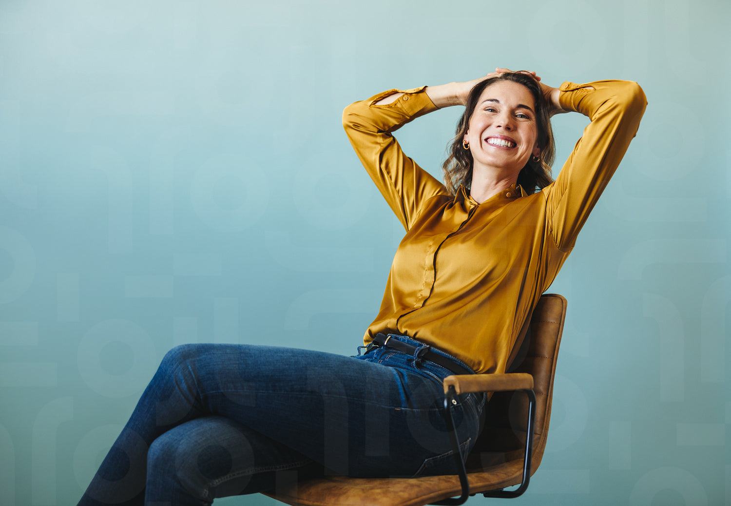Woman representing the face of female success a she sits on a chair in a studio. Business woman celebrating the accomplishments she has made in her career as an entrepreneur.