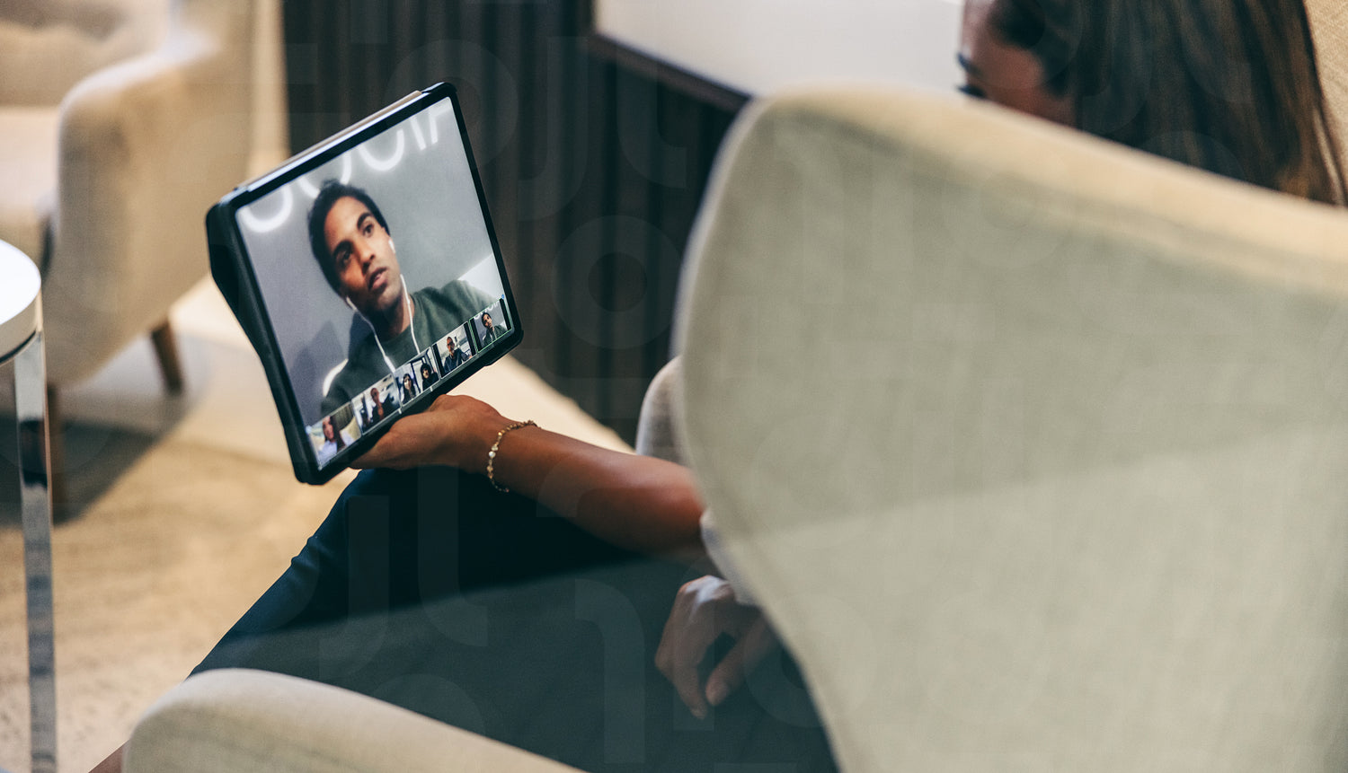 Black businesswoman attending a video conference in an office. Modern businesswoman using a digital tablet for a virtual meeting with her partners. Female entrepreneur doing global business.