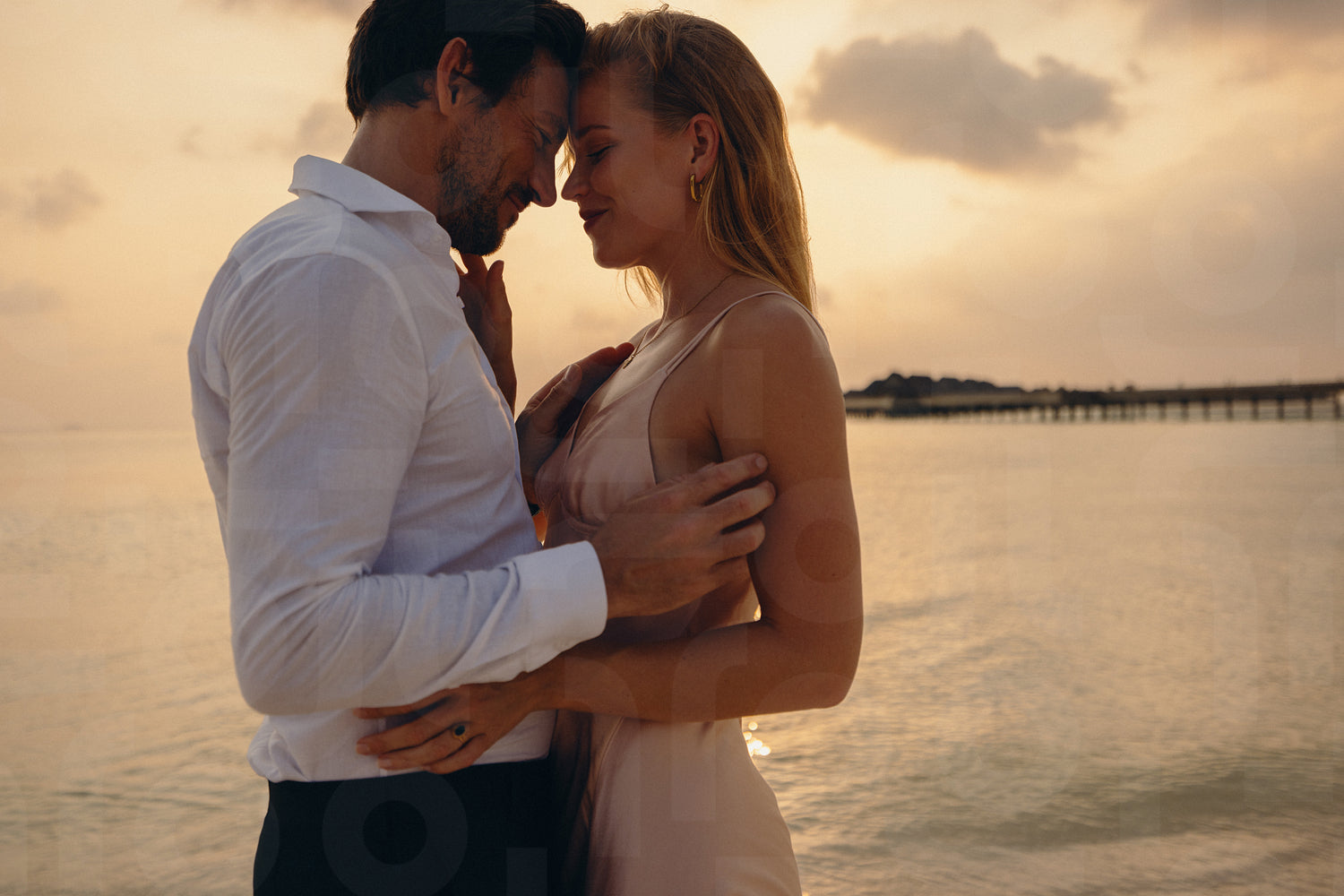 Sunset romance: Couple embracing a romantic moment on a tropical island