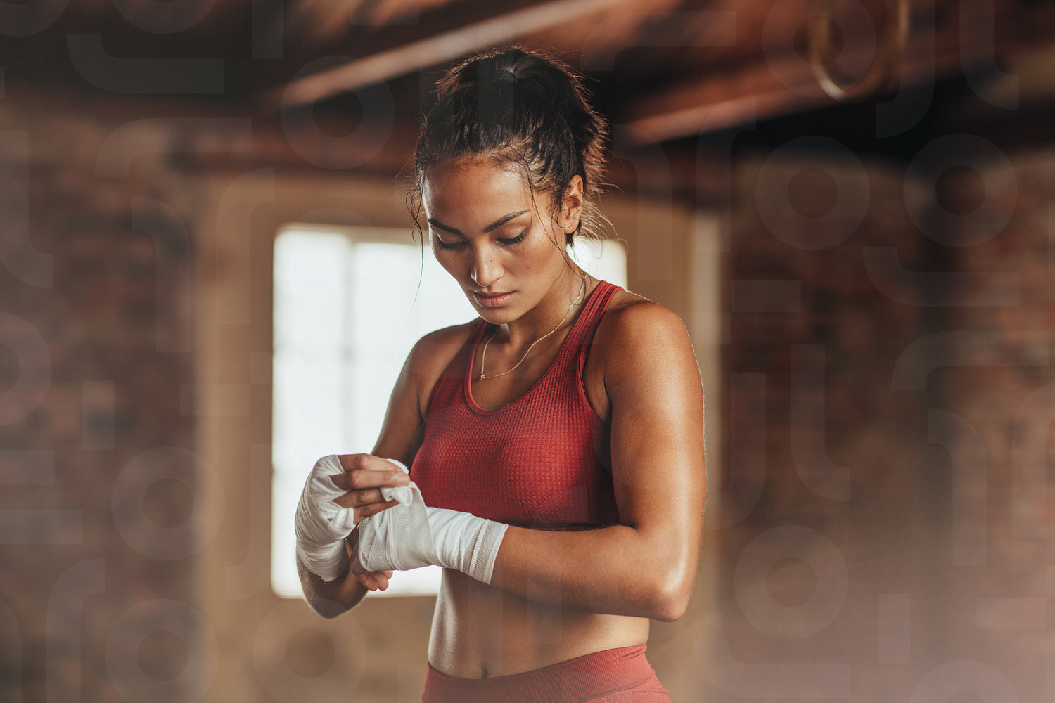 Female boxer wearing strap on wrist