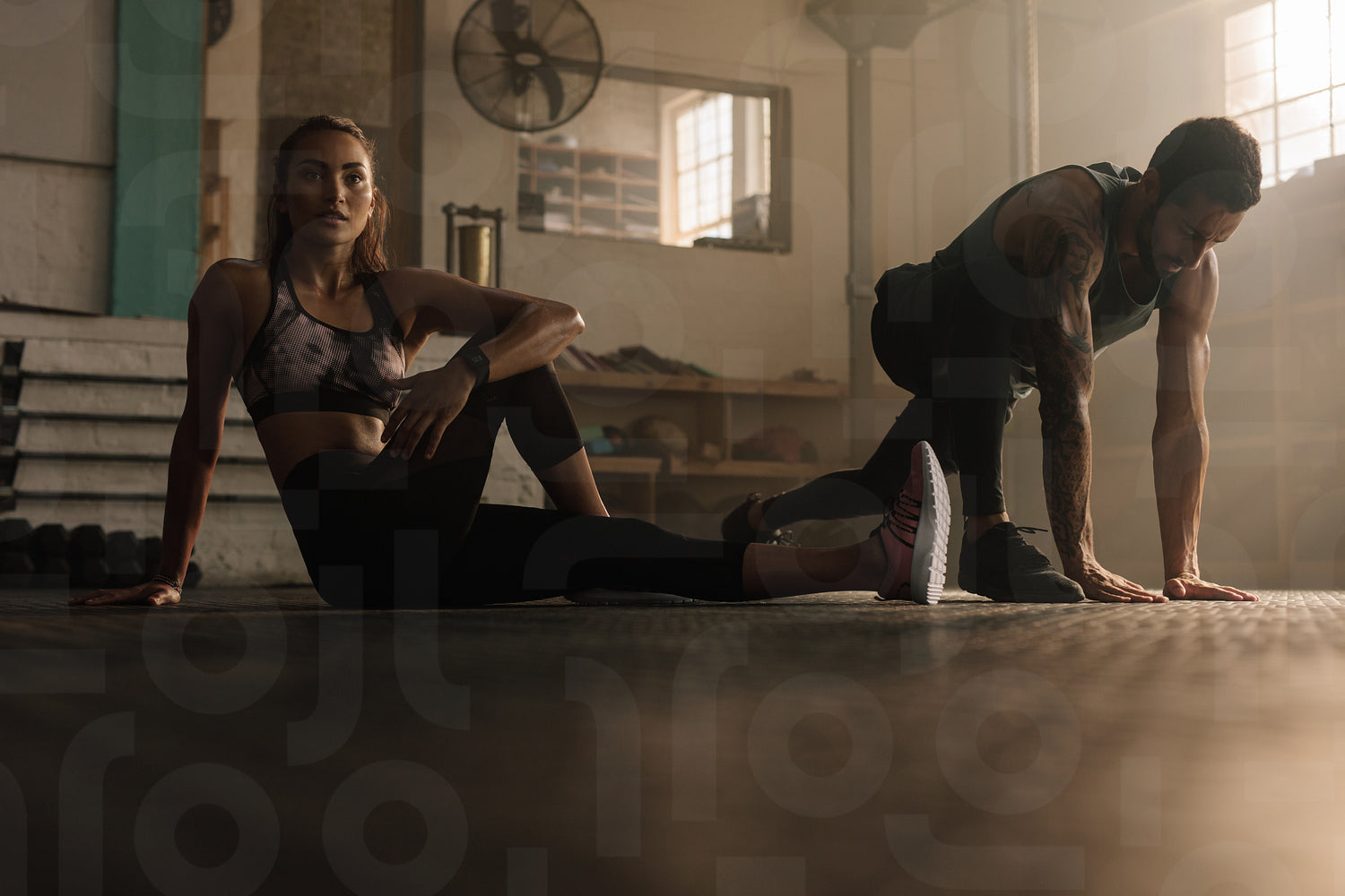Fitness people doing stretching warmup at gym