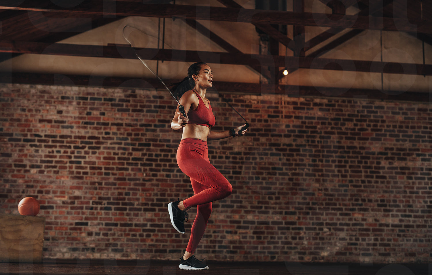 Healthy woman skipping rope at gym