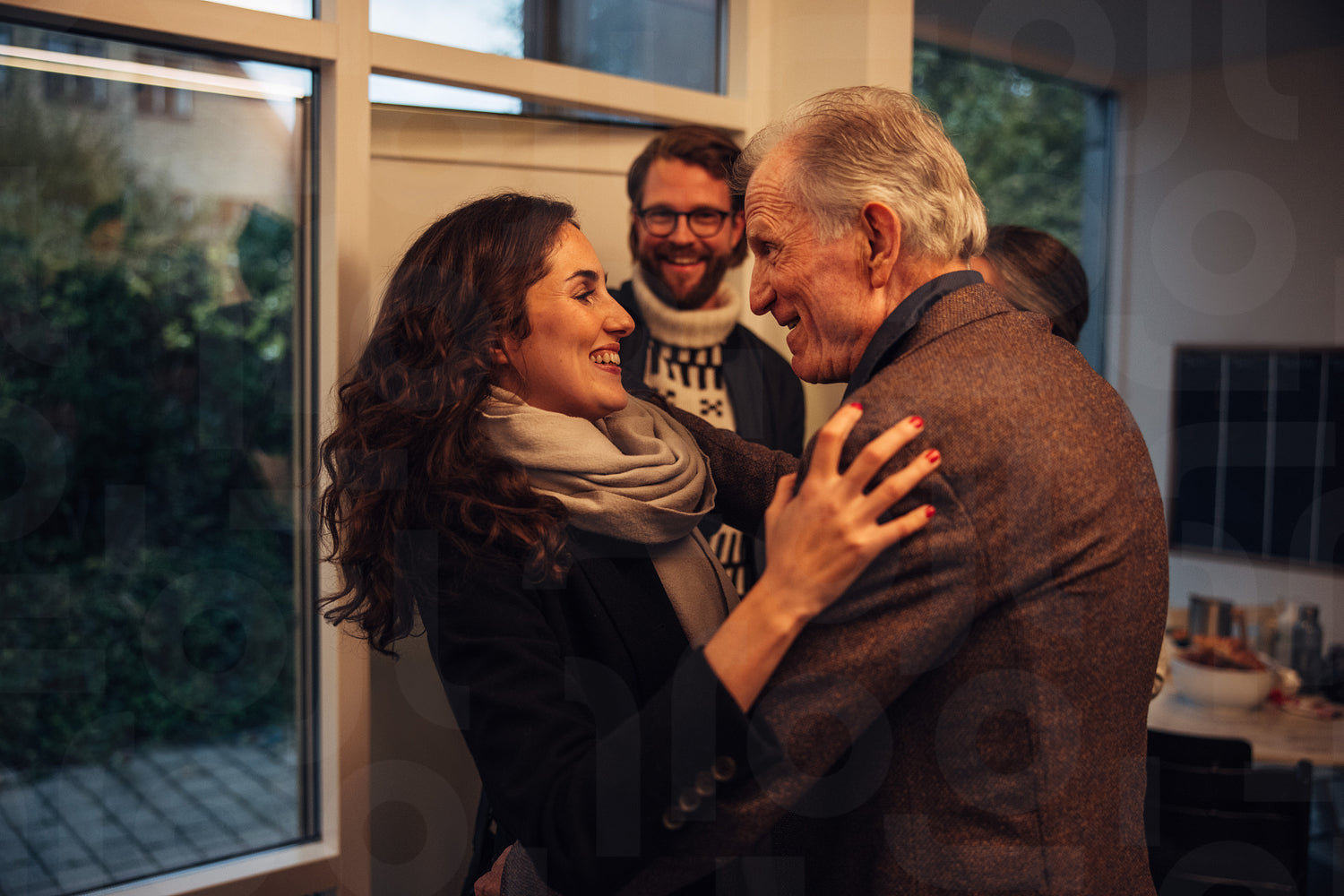 Family visiting grandparents for christmas dinner. Family coming over for Christmas eve celebrations at grandparents.