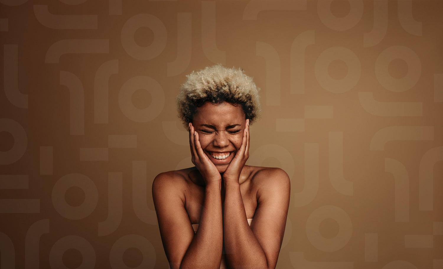 Portrait of excited african american woman. Happy woman with hands to her cheeks in an excited mood.