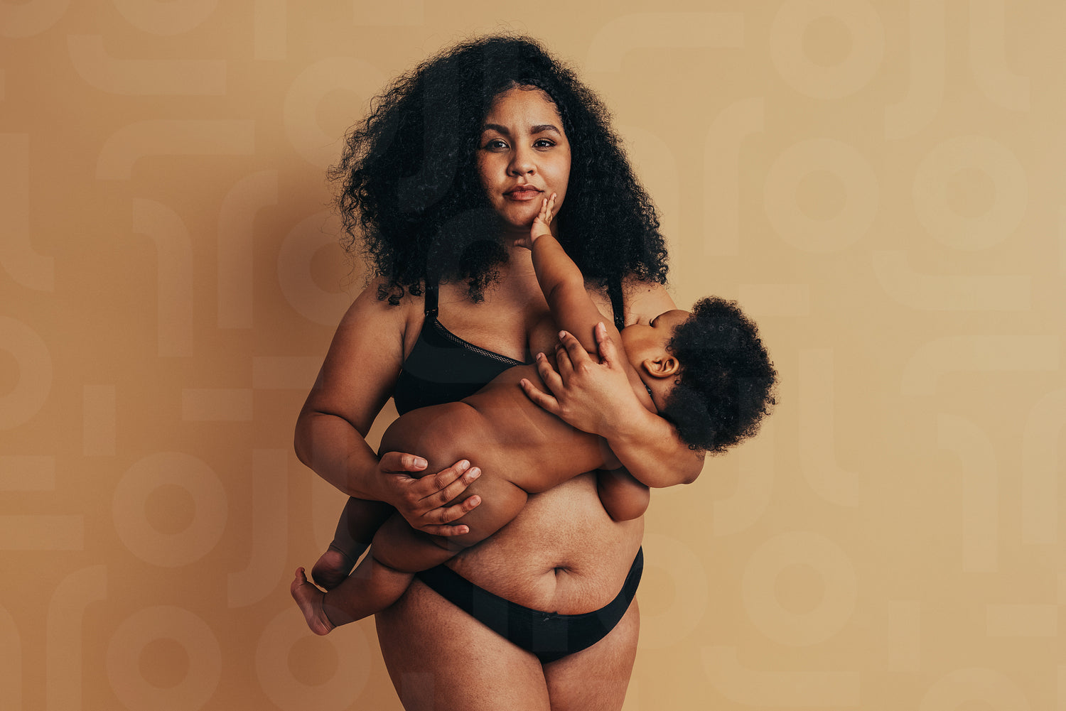 Postpartum mother breastfeeding her baby. African woman nursing her baby.