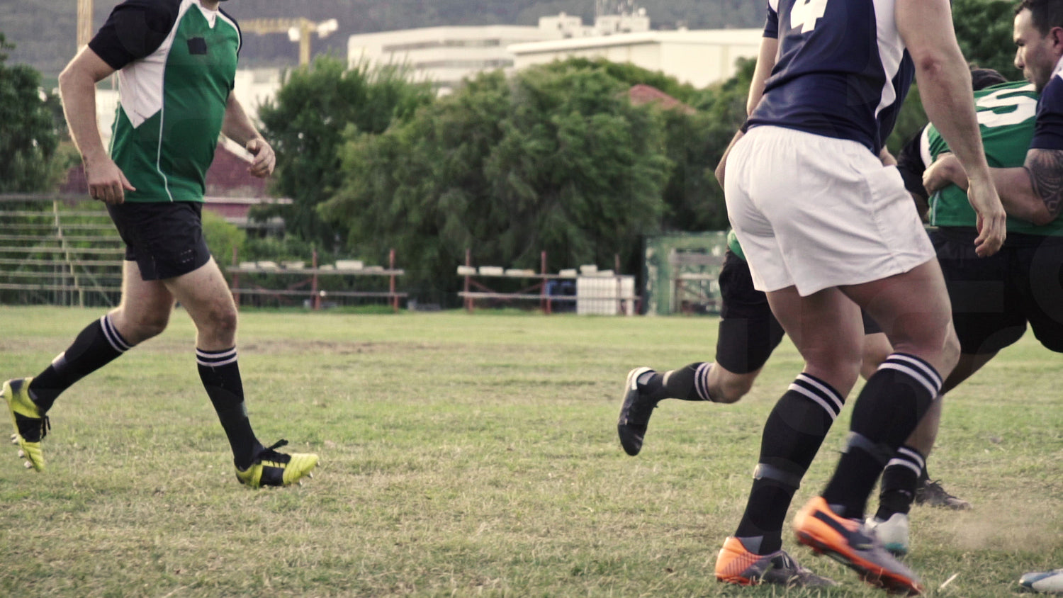Rugby players in action on pitch