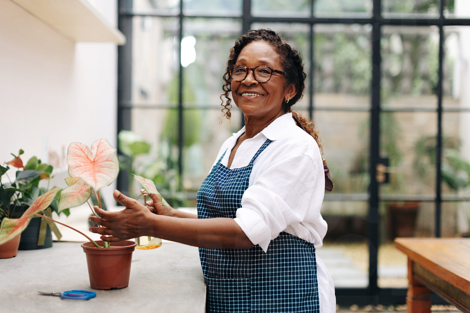 Black business woman grows flowers for her floral startup, pouring her heart and soul into creating beauty and joy through her floral arrangements.