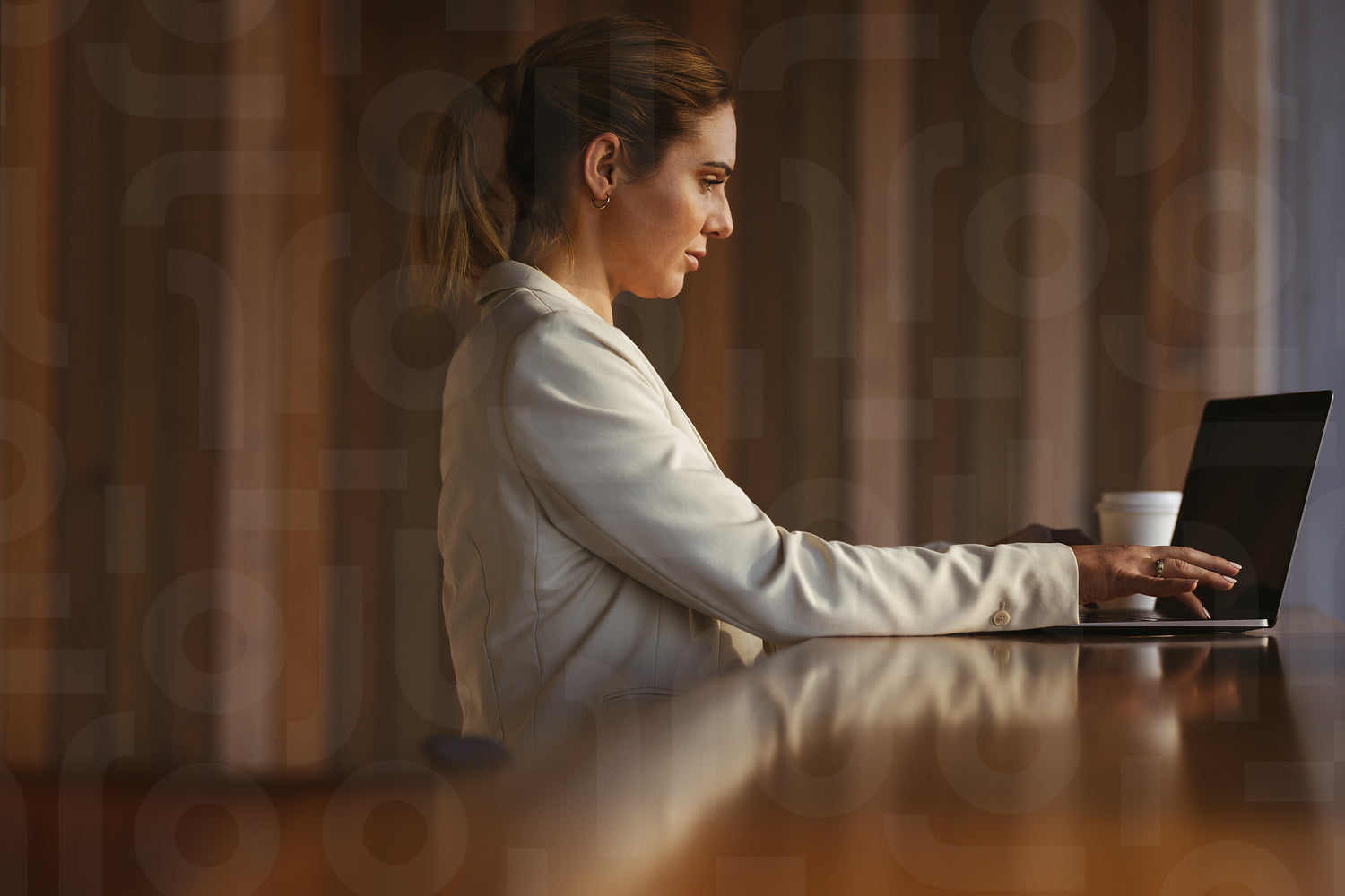 Female entrepreneur in the cafe typing on a laptop